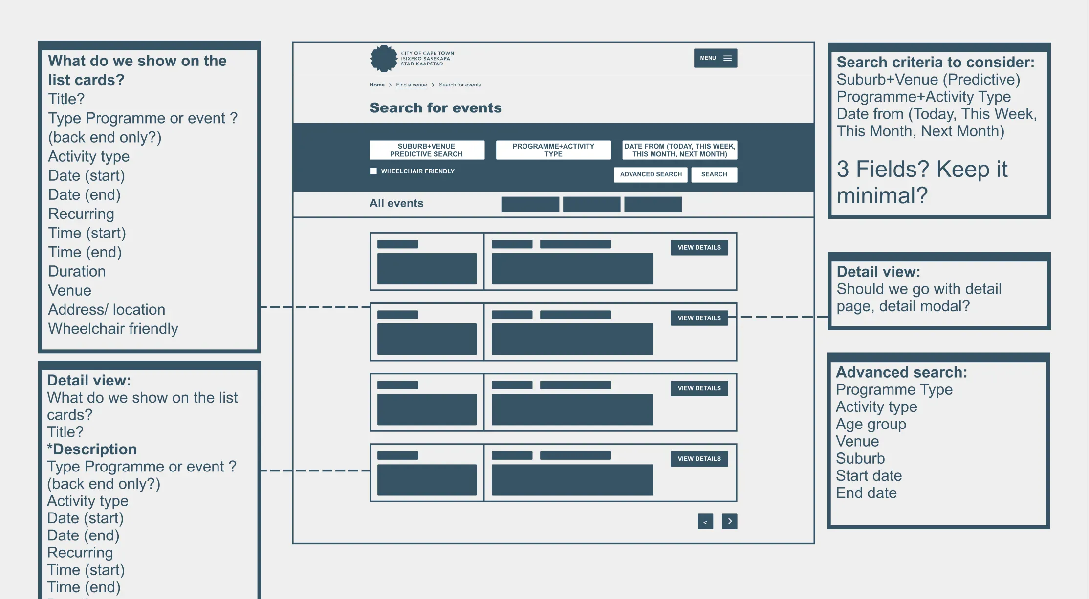 In the research phase, I employed various methodologies to gain insights into user needs and pain points. I conducted interviews and workshops with City of Cape Town stakeholders to understand their requirements and expectations.