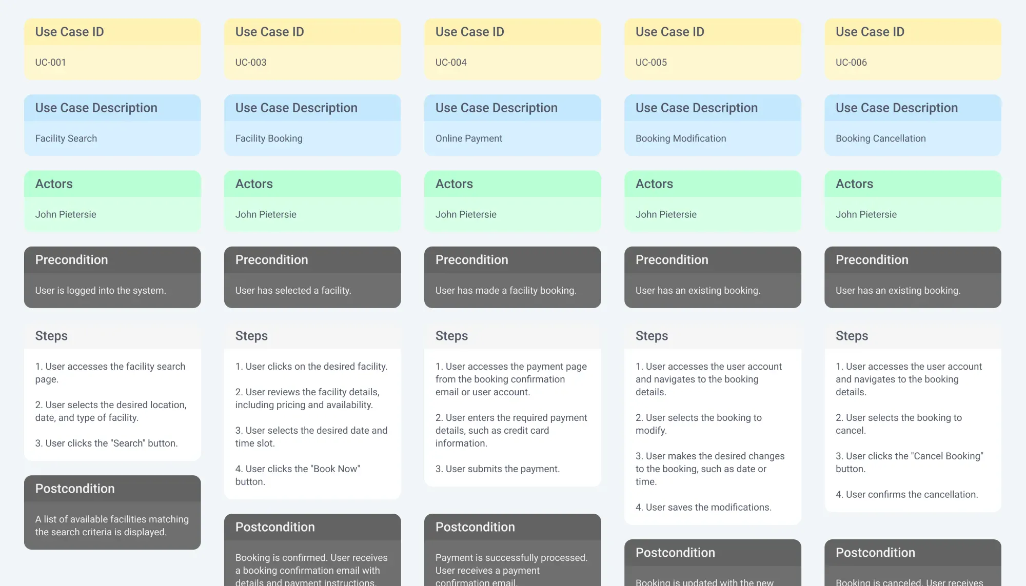 User stories were created to capture the user’s journey, highlighting their motivations and tasks at each stage of the booking and payment process.